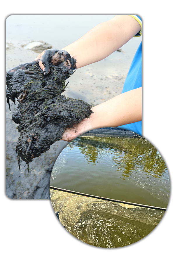 - Phân hủy phân tôm, bùn bã hữu cơ tích tụ dưới đáy ao.