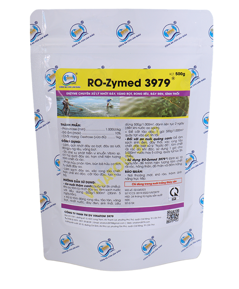 - Sử dụng Ro-Zymed 3979® định kỳ 10 ngày/lần để hạn chế hiện tượng tôm chết rải rác, hồng thân, đỏ thân và đốm trắng.