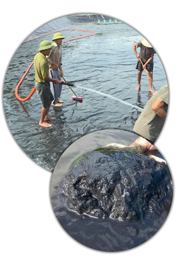 - Làm sạch nhớt đáy ao bạt, đáy ao lưới, đóng rong rêu, váng bọt.