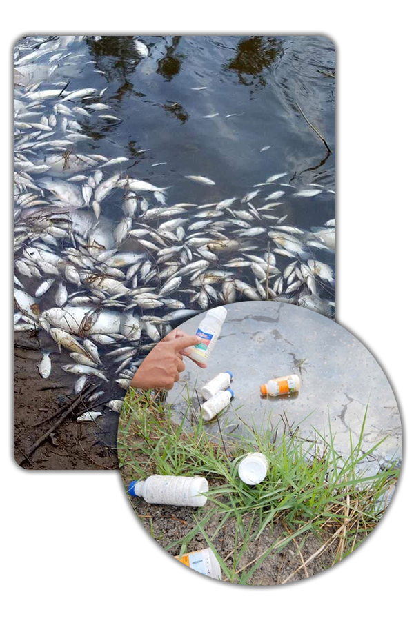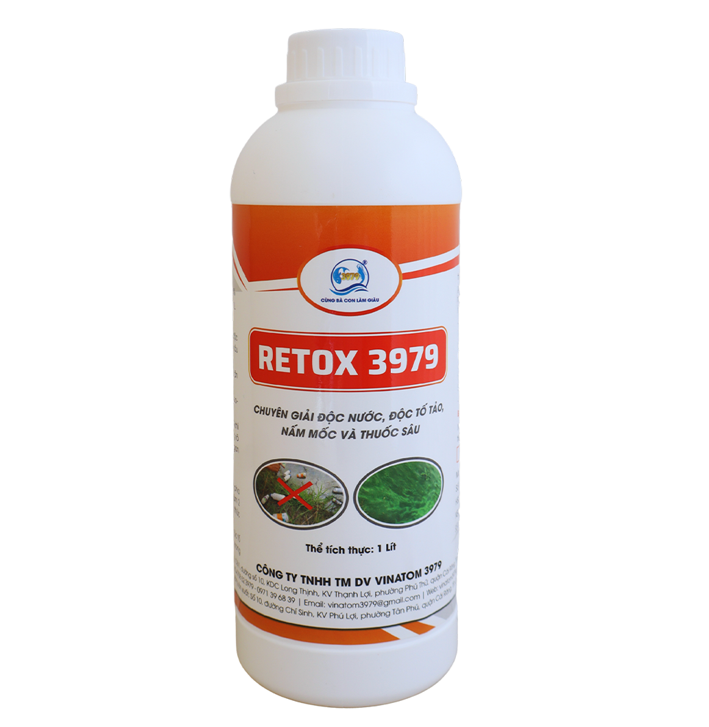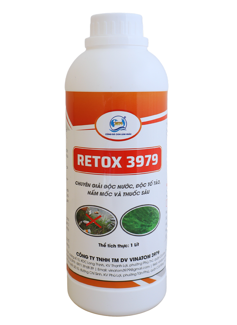 - Có thể kết hợp tạt 1 lít sử dụng cho 1.500m³ (7 – 8h sáng) để giải độc thuốc diệt giáp xác, kim loại nặng, Chlorine, độc tố tảo (ao công nghiệp) hay tạt 1 lít RETOX 3979 sử dụng cho 3 – 5 công (ao quảng canh) tùy theo tình trạng nhiễm độc tố thuốc sâu, Saponin chai trong ao.